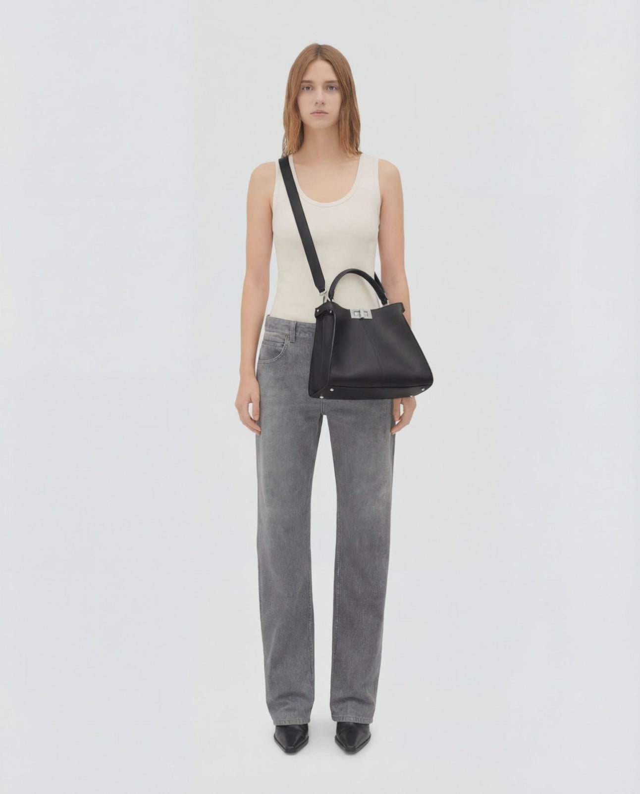 Sleek and refined, this design features a twist lock closure with a discreet inner pocket to keep essentials secure. Finished with an optional shoulder strap, it offers effortless versatility for day to night wear.